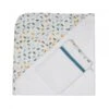 Neuf accessoires indispensables pour la toilette et les soins de bébé : thermomètre de bain, thermomètre digital, ciseaux, coupe-ongles, brosse à cheveux, anneau de dentition, masseur de gencives, mouche bébé manuel, lime à ongles.